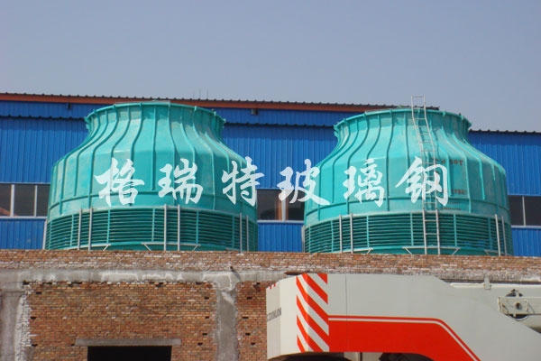 图为为山东某公司生产的两台大型玻璃钢冷却塔,玻璃钢冷却塔吊装完毕。